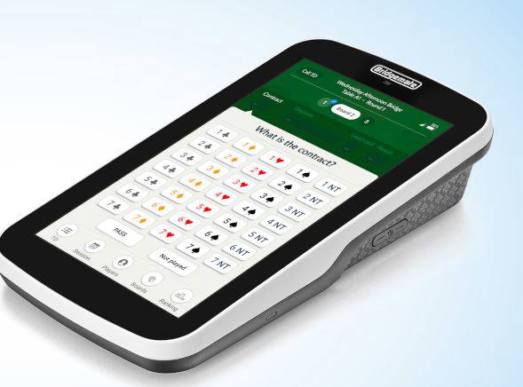 The company that produces Bridgemates (the popular bridge table scoring package) has introduced a new model, Bridgemate III, pictured opposite, which is advertised as a major enhancement of the previous Bridgemate II model. In particular, the Bridgemate III features a large colour touchscreen, making score entry easier, a more flexible and user-friendly presentation of results and rankings, and easier player management for the tournament organiser. You can find full details of the new models here. All these advanced features come at a price, of course – more below.