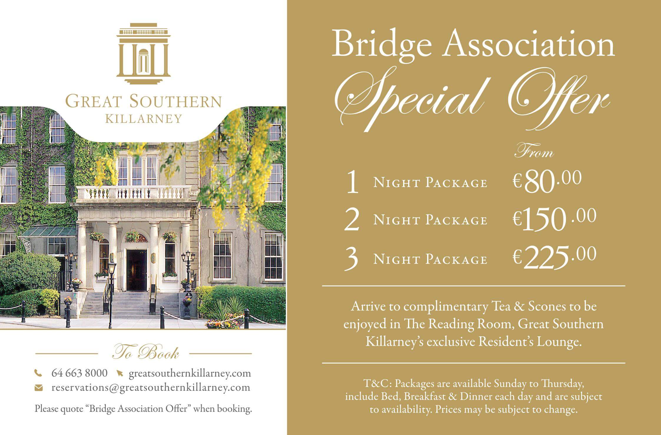 The hotels listed below are committed to supporting bridge, and sometimes offer special deals for bridge players or groups. We encourage our members to support them. Click on the links provided for details of current offers (if any), and please contact the hotels directly for further information.